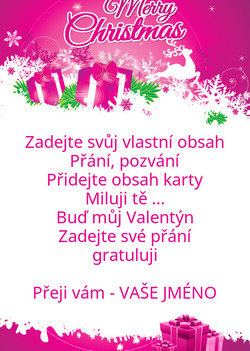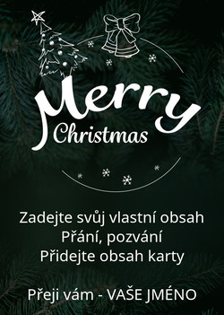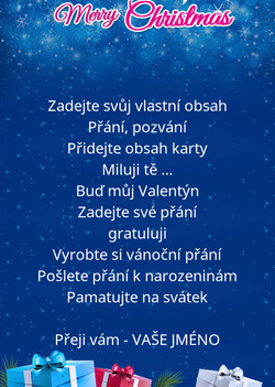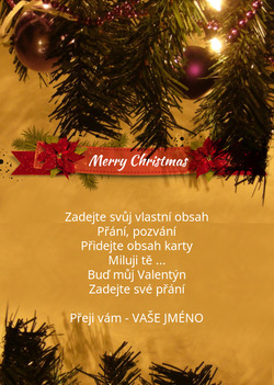 Veselé Vánoce! Přeji Vám krásné svátky plné radosti, pohody, lásky a splněných přání v kruhu rodiny a přátel. Ať Vám pod stromečkem zazáří dárky a nový rok přinese hodně štěstí, zdraví a úspěchů, vše nejlepší!.
